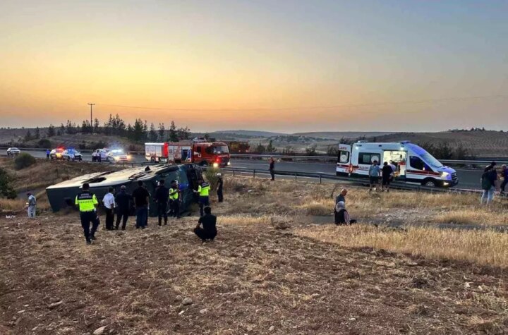 Şanlıurfa-Gaziantep Otoyolu'nda devrilen yolcu otobüsündeki 27 kişi yaralandı. Kaza sonrası 3 yaralının durumu ağır.